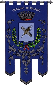 | Drappo di colore azzurro ornato di ricami d'argento con lo stemma comunale ed iscrizione al centro "Comune di Vaiano" |